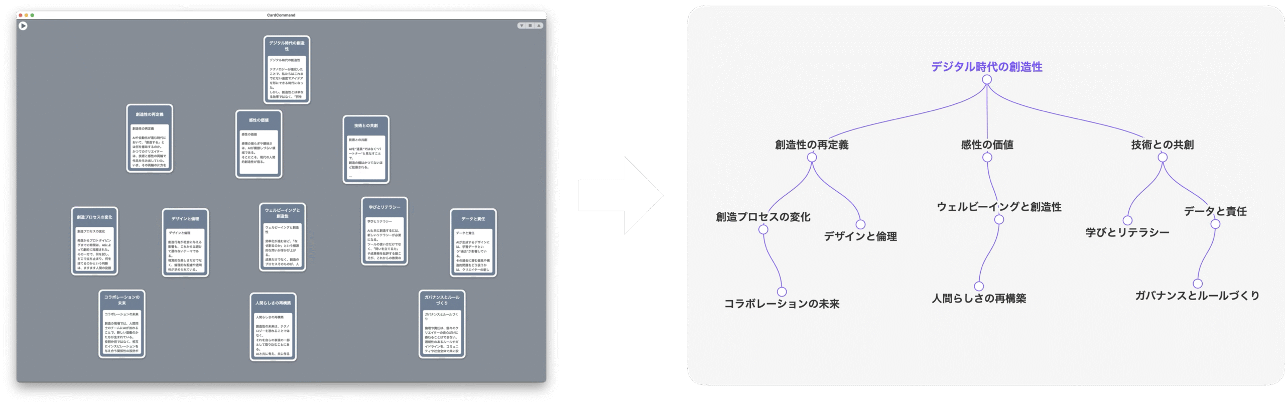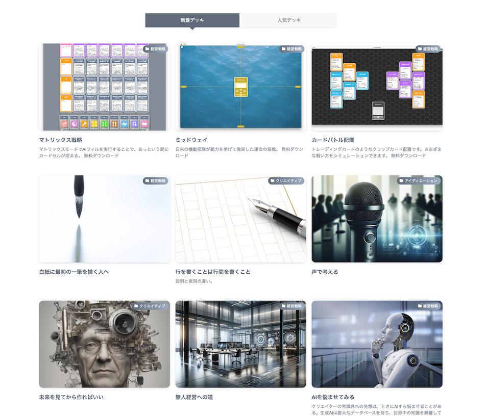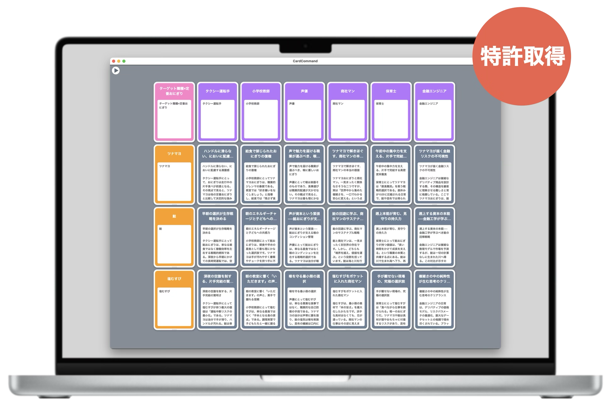 カードを書いて、並べ替えるだけで、プロ品質のアウトプットを作ることができるアプリです。